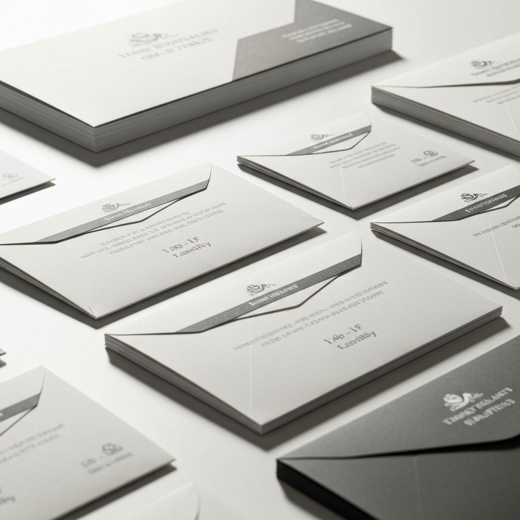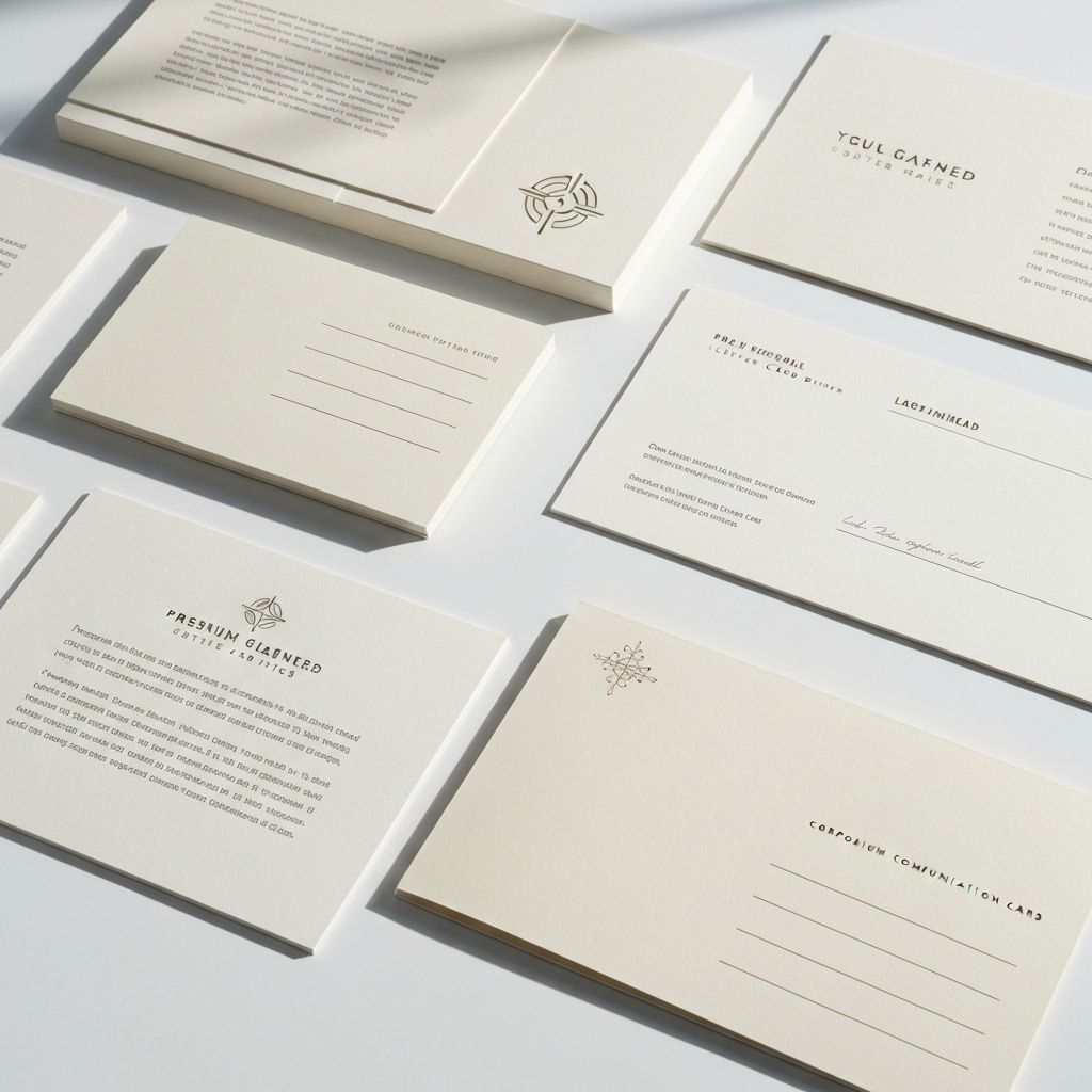 Premium stationery and letter cards for professional communication. High-quality paper with custom branding.